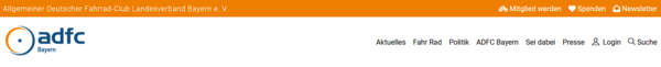 Über der Hauptnavigation gibt es eine zweite Navigationszeile, welche „Mitglied werden“, „Spenden“ und „Newsletter“ beinhaltet. Es sind standardmäßig bereits Links hinter den einzelnen Menüpunkten verborgen. Diese können über den ADFC-Konfigurator individualisiert und verändert werden.