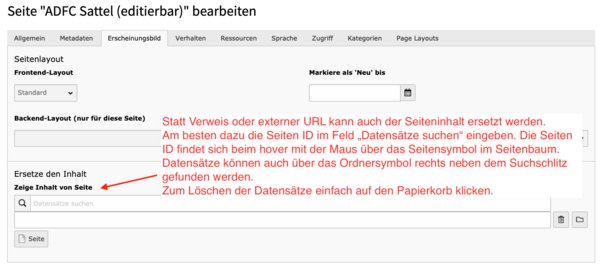 Das ist wichtig, wenn die alte bisherige Seite "ADFC Beispielgliederung" durch die neue, frei editierbare Seite "ADFC Beispielgliederung (editierbar)" ersetzt werden soll.